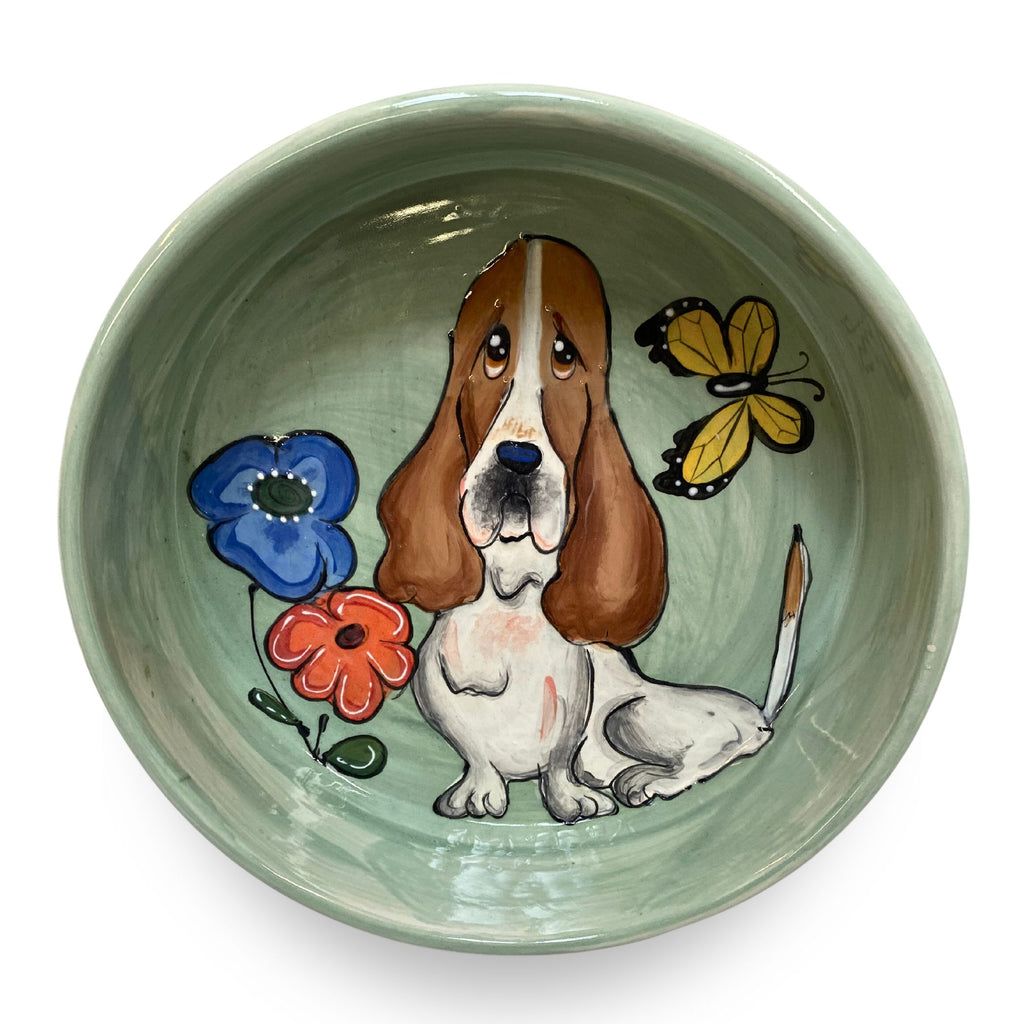 デビー・カーマンが愛情を込めて手作りしたこのボウルは、世界中のペット愛好家にとって魅力の宝庫です。穏やかなバセットハウンドが羽ばたく蝶と魅惑的に交流する姿を描き、純粋な気まぐれな瞬間を捉えています。