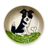 Description: Grazing within the realms of art and nature, our "Canine Countryside" Collection offers the "Green Pastures Pup" Bowl, featuring a beautifully hand-painted Border Collie in repose against the tranquility of nature's backdrop. This piece captures the serene moments of a Border Collie at rest in a field, a sight that warms the heart of dog lovers.