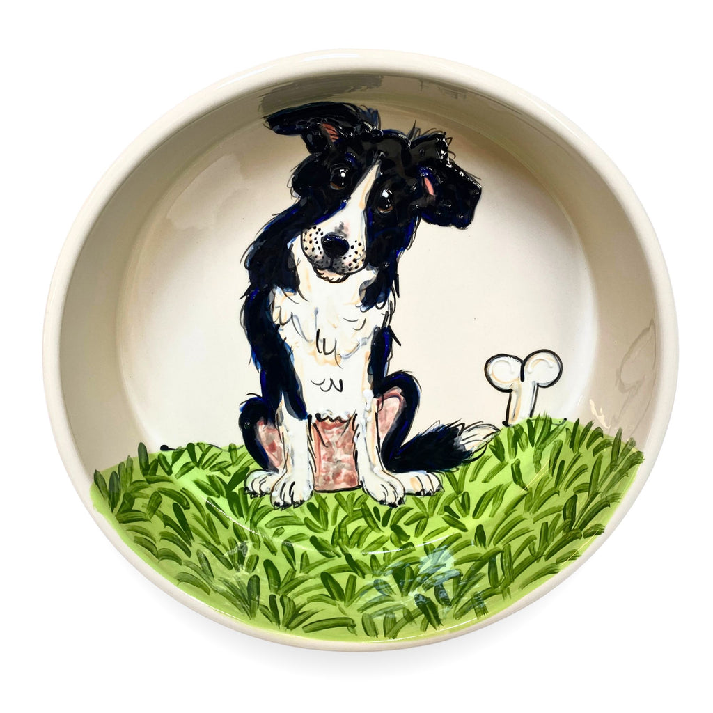 "Mischief in the Meadow" Hand-Painted Border Collie Bowl - "Countryside Canine" Collection