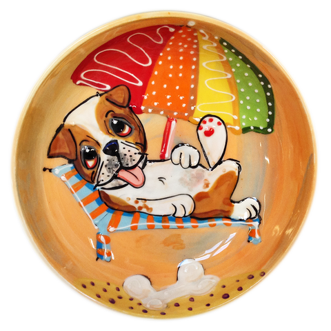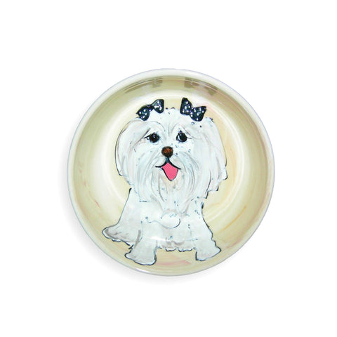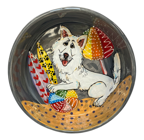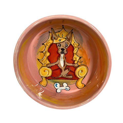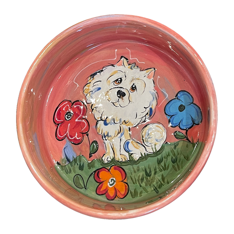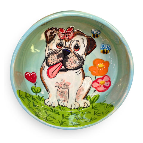 Each ceramic pet bowl is hand-painted and one-of-a-kind. Lead-free, non-toxic, microwave & dishwasher safe. Personalization included—crafted in the USA.