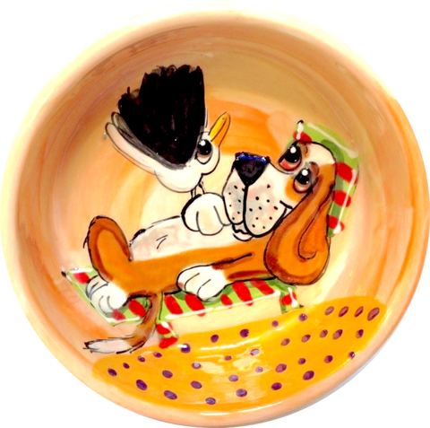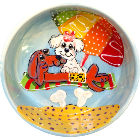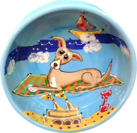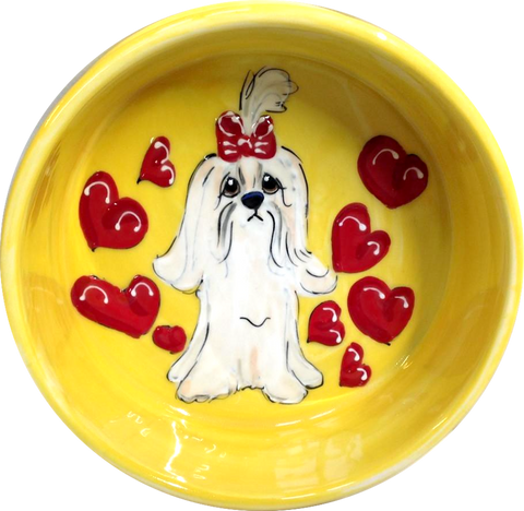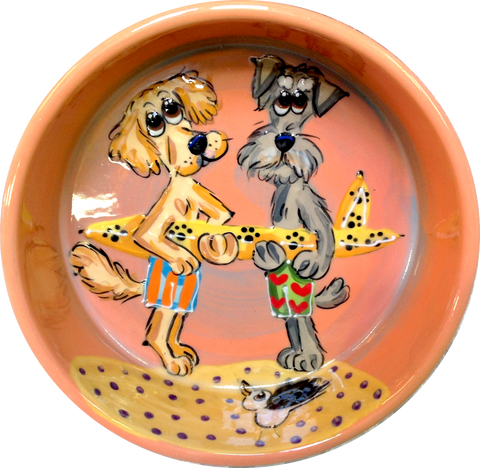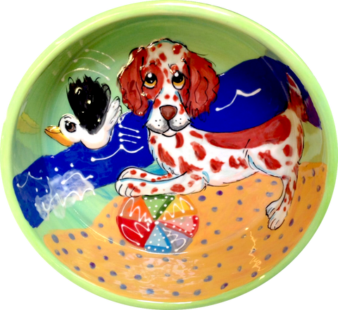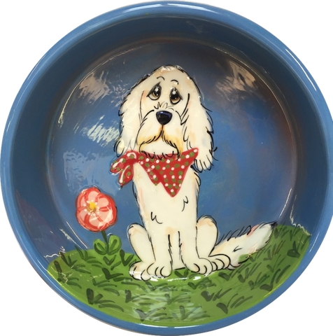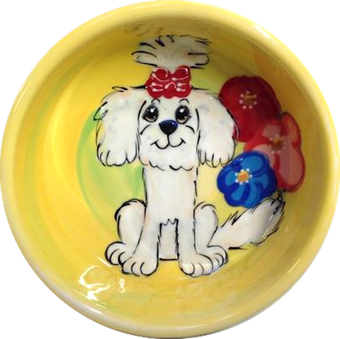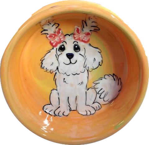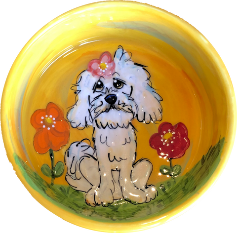 Each ceramic pet bowl is hand-painted and one-of-a-kind. Lead-free, non-toxic, microwave & dishwasher safe. Personalization included—crafted in the USA.