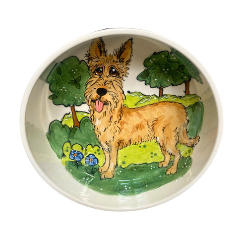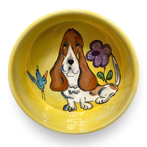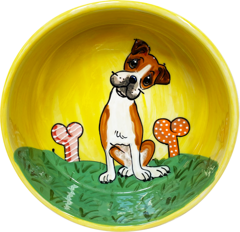 Each ceramic pet bowl is hand-painted and one-of-a-kind. Lead-free, non-toxic, microwave & dishwasher safe. Personalization included—crafted in the USA.