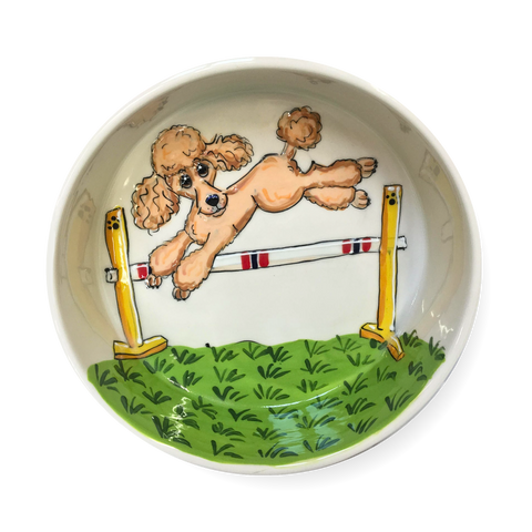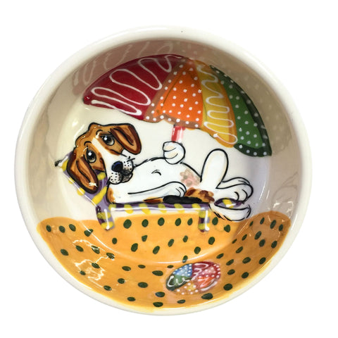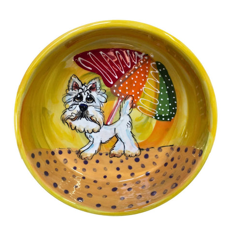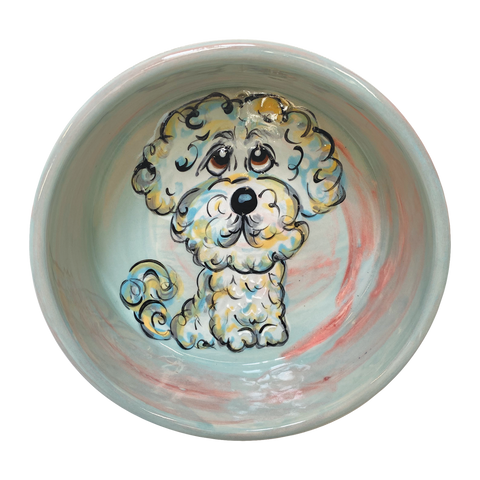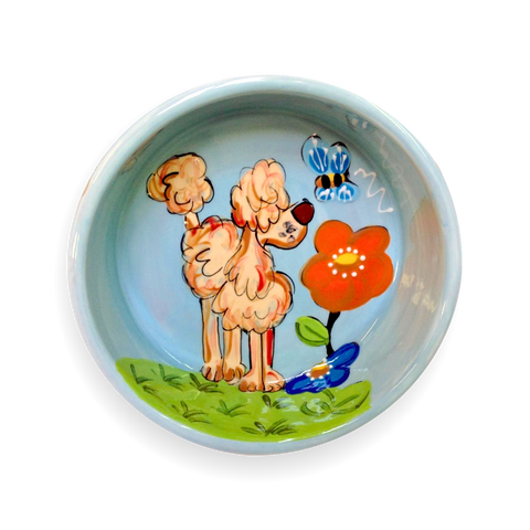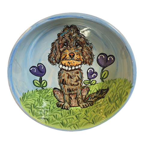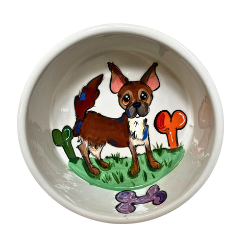 Each ceramic pet bowl is hand-painted and one-of-a-kind. Lead-free, non-toxic, microwave & dishwasher safe. Personalization included—crafted in the USA.