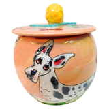 カスタムセラミック陶器の犬用おやつジャー。ユニークでユニークな作品は、それぞれ米国で手作りされています。