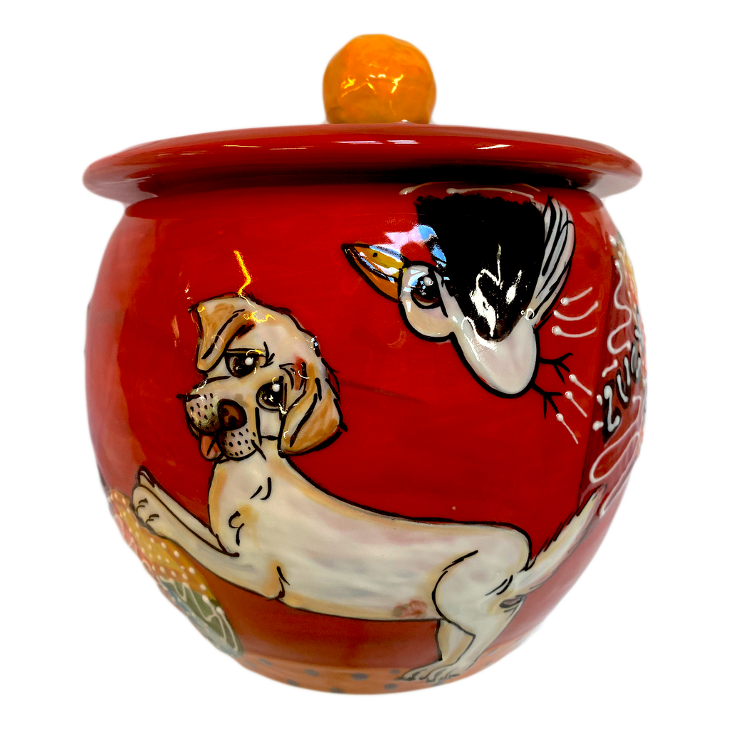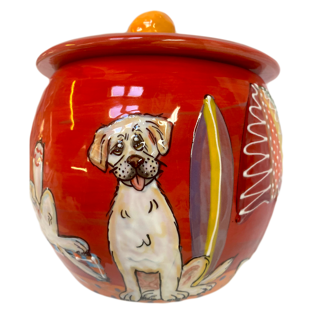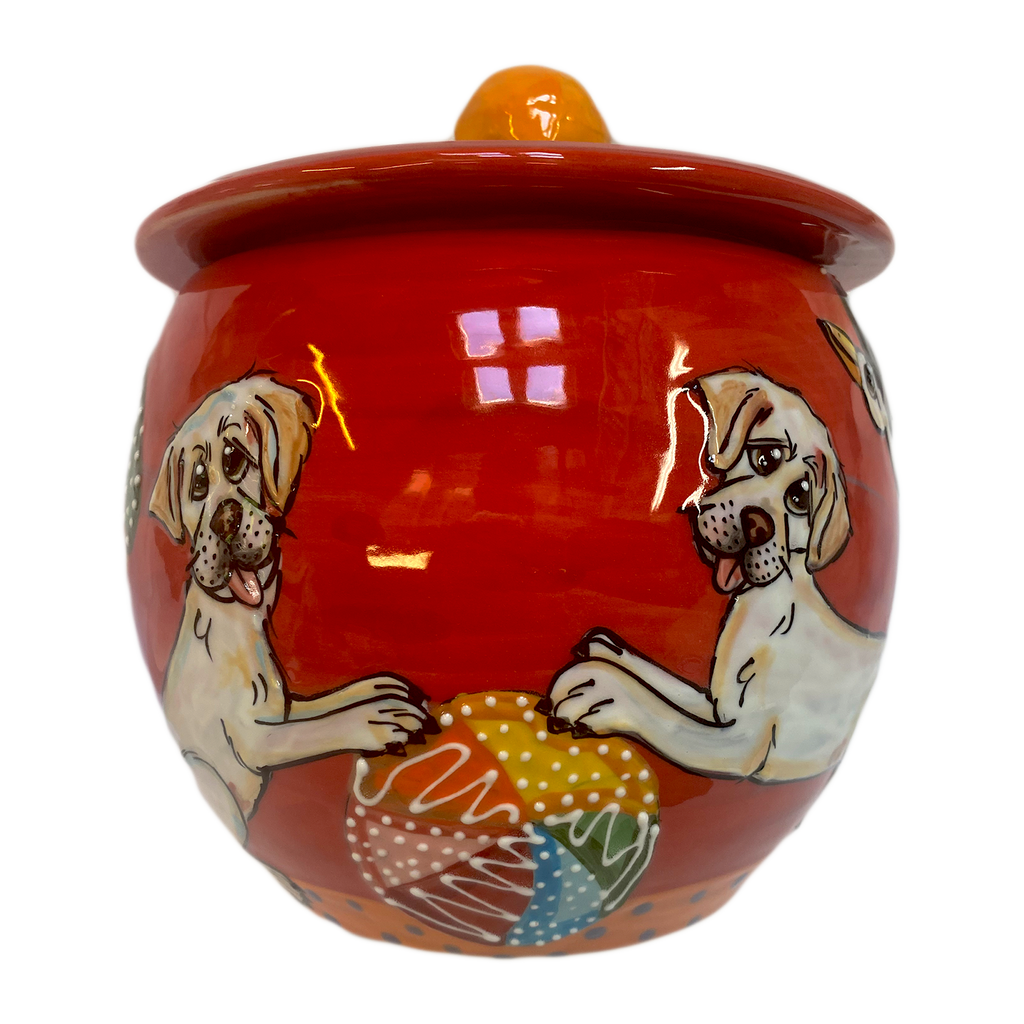 Custom Ceramic Pottery Dog Treat Jar. Unique and one of a kind, each piece is hand made in the USA.
