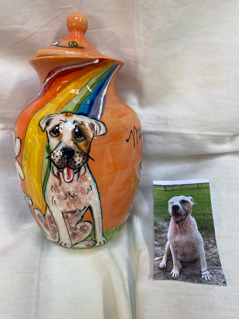 Pet memorial urns- white porcelain ceramic fine handcrafted original art created at the Faux Paw Studios made in America, custom designs your special pet made with loving care as a lasting cherishable Pet memorial