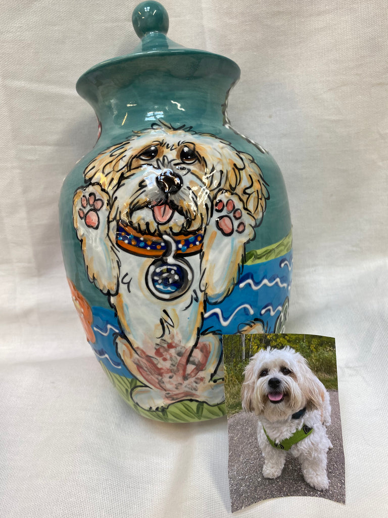 Pet memorial urns- white porcelain ceramic fine handcrafted original art created at the Faux Paw Studios made in America, custom designs your special pet made with loving care as a lasting cherishable Pet memorial