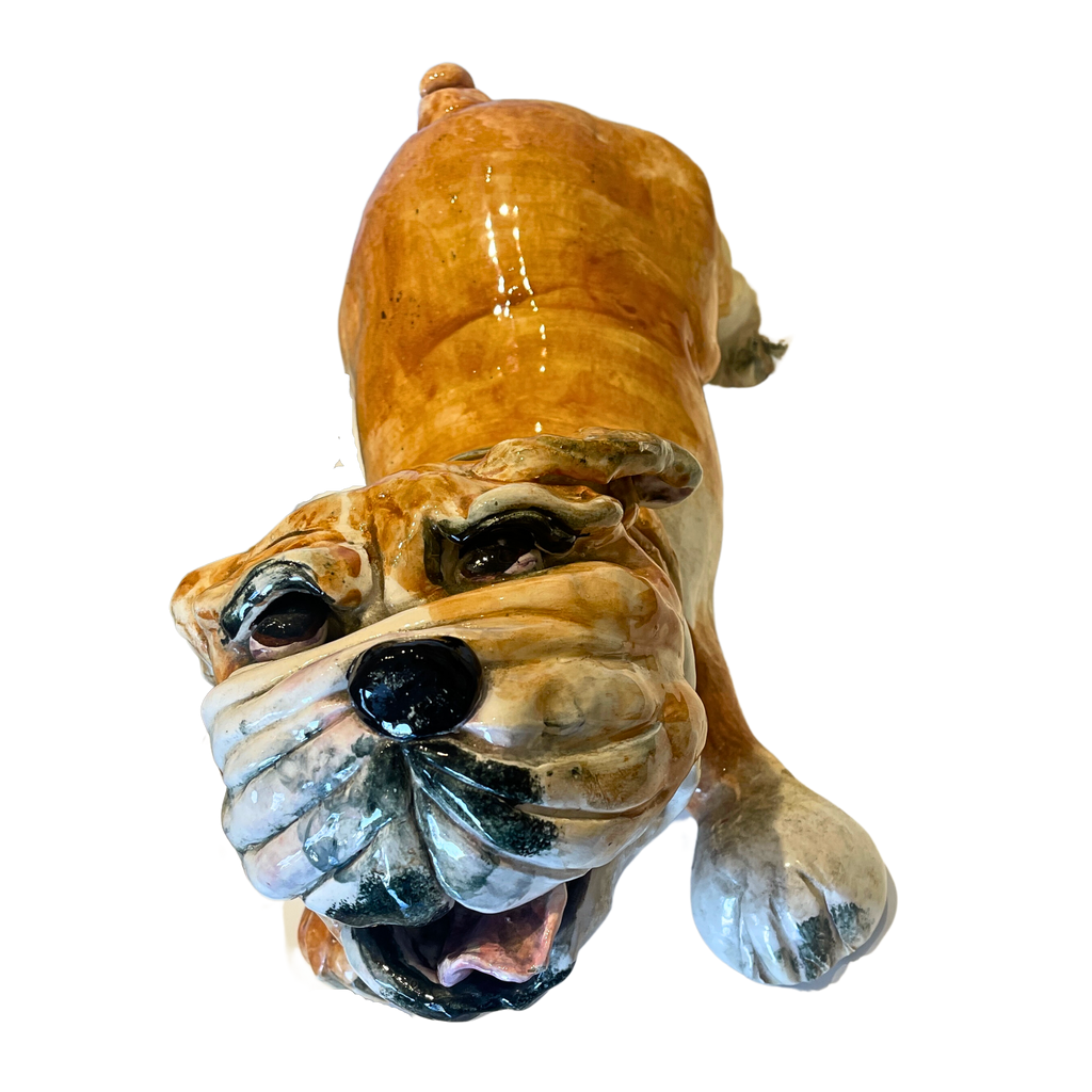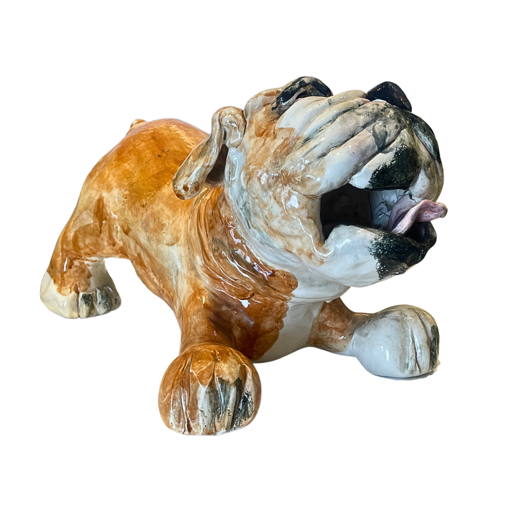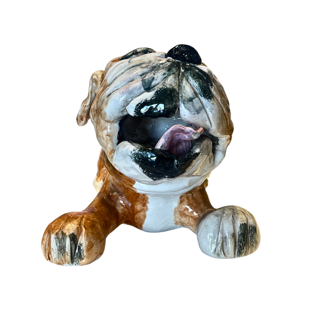 ラグーナ ビーチ アーティスト、デビー カーマンによる手作りの高級磁器セラミック ブルドッグの彫刻