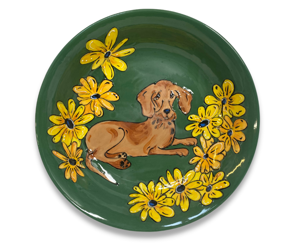 "Indulge in the charm of bespoke artistry with our Whimsical Dachshund Hand-Painted Ceramic Serving Bowl, a unique creation by the acclaimed Debby Carman.