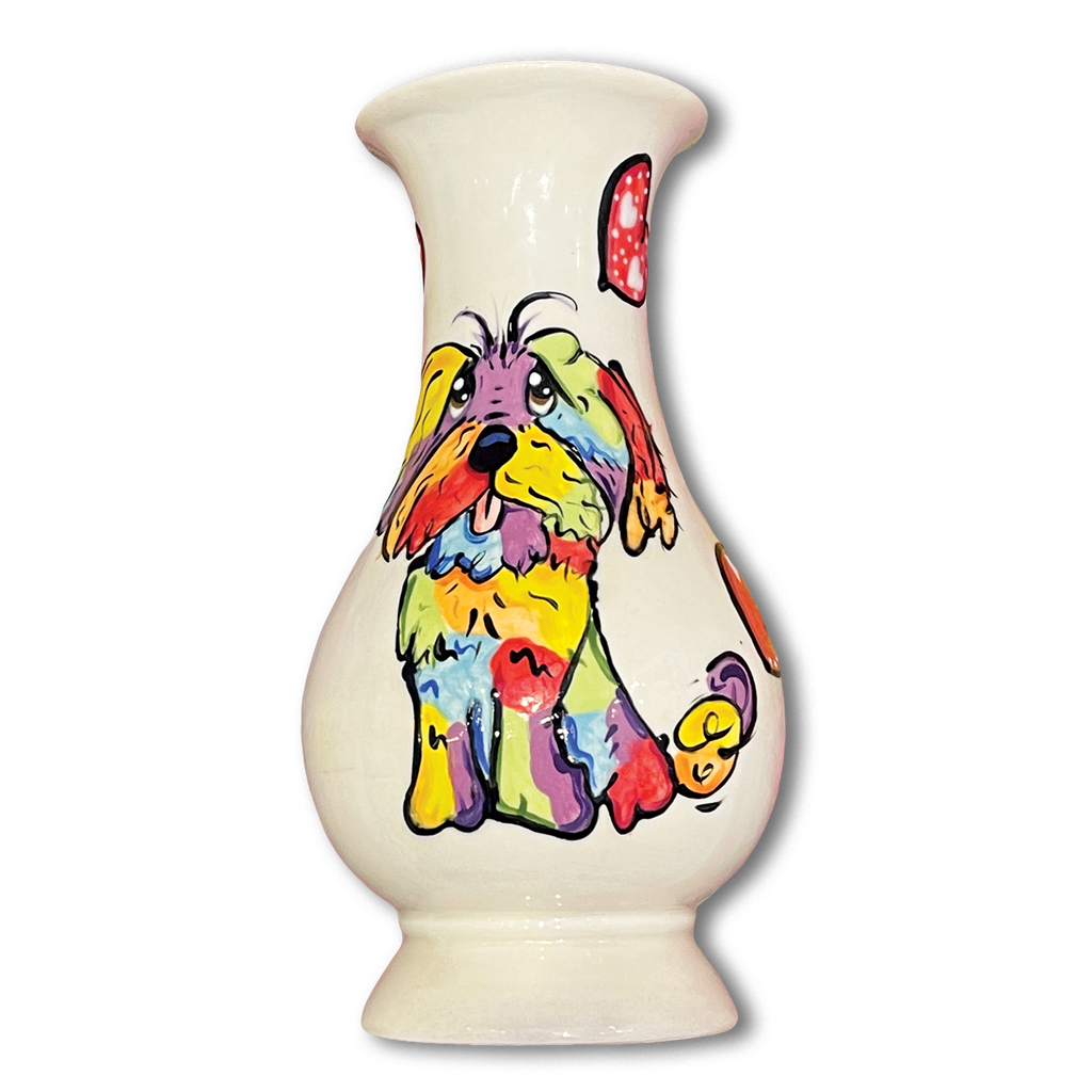 Our Newest Vase in Rainbow Palz! Handmade fine ceramic porcelain and hand-painted by Renowned Laguna Beach Artist, Debby Carman.