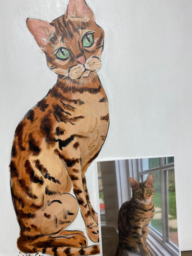 Original acrylic painting on Fine Linen canvas by Laguna Beach Artist Debby Carman of your special pet. The artist prepares two concepts before a final painting is completed for your approval. A copy of this painting is available in a Giclee, which resembles an original. It is a high resolution fine art reproduction that the artist over paint to resemble an original.