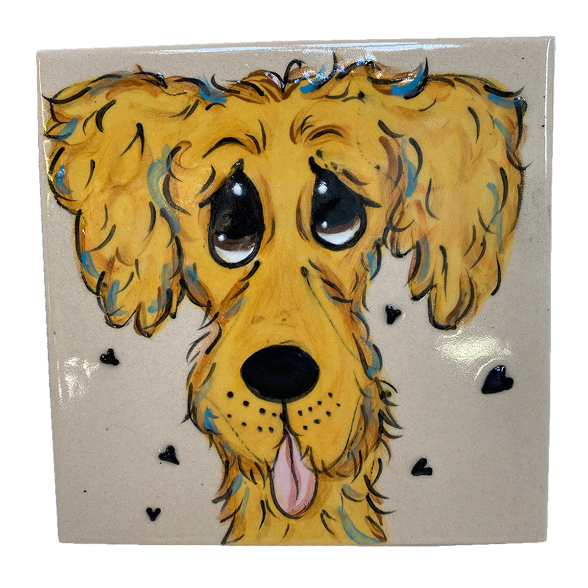 Adorn any area with this handcrafted Golden Retriever tile! Expertly made, it showcases captivating hues and a beloved canine pattern, accenting the décor with a lighthearted feel. Display it boldly to cherish your admiration for these beloved pooches!