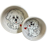 Introducing the "Bichon Frise Bliss Bowl Set," a duo of charm and functionality, hand-painted by the distinguished Debby Carman.