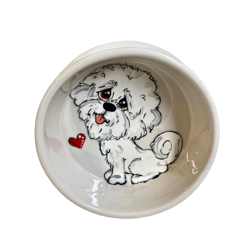 Each bowl, with its playful depiction of this beloved breed and accents of affectionate red hearts, is a loving tribute to your pet's joyous spirit. Hand crafted with care in the USA, these bowls are not only a beautiful addition to your home but also boast practicality, being food safe, microwave, and dishwasher safe. Perfect for pampering your precious Bichon with style and love.