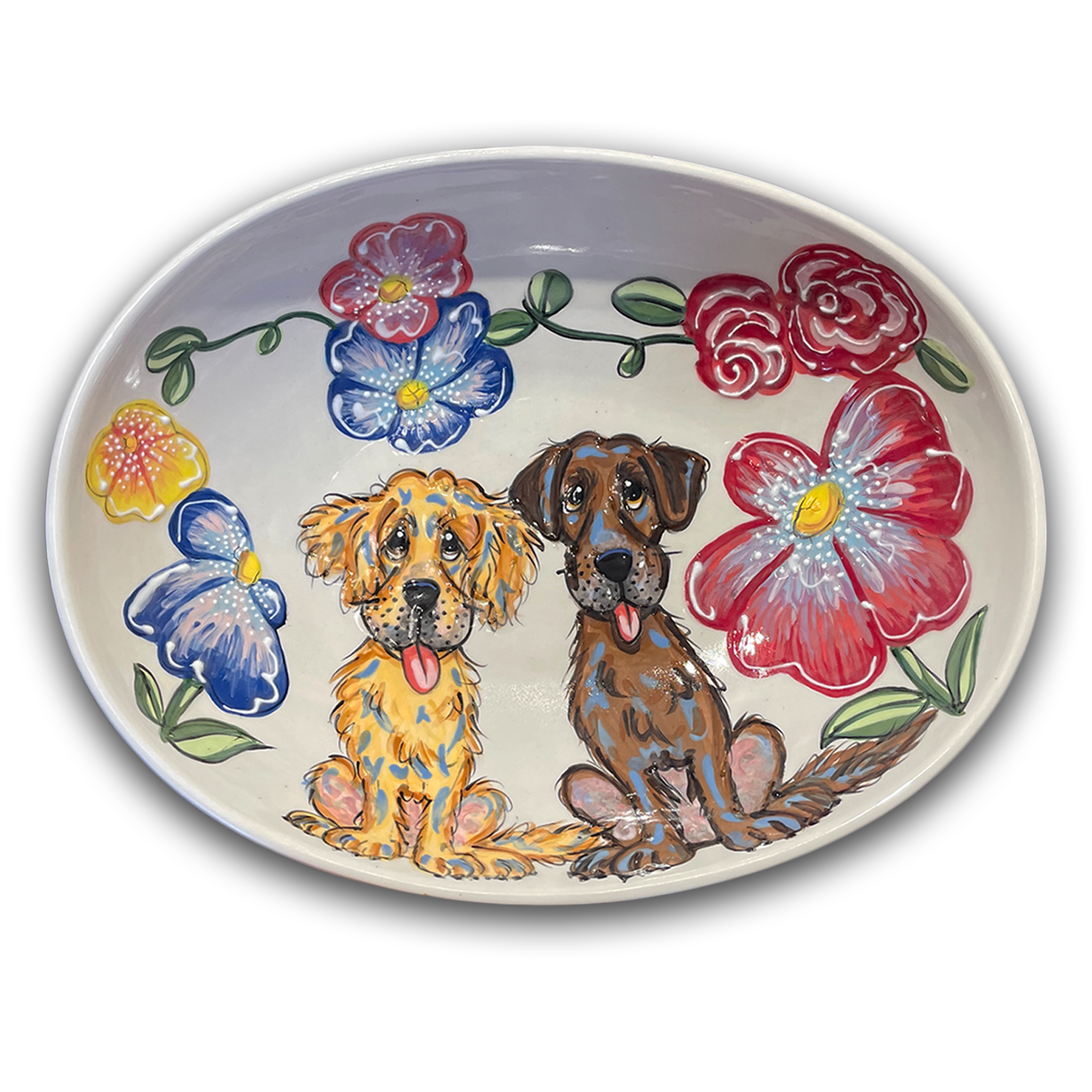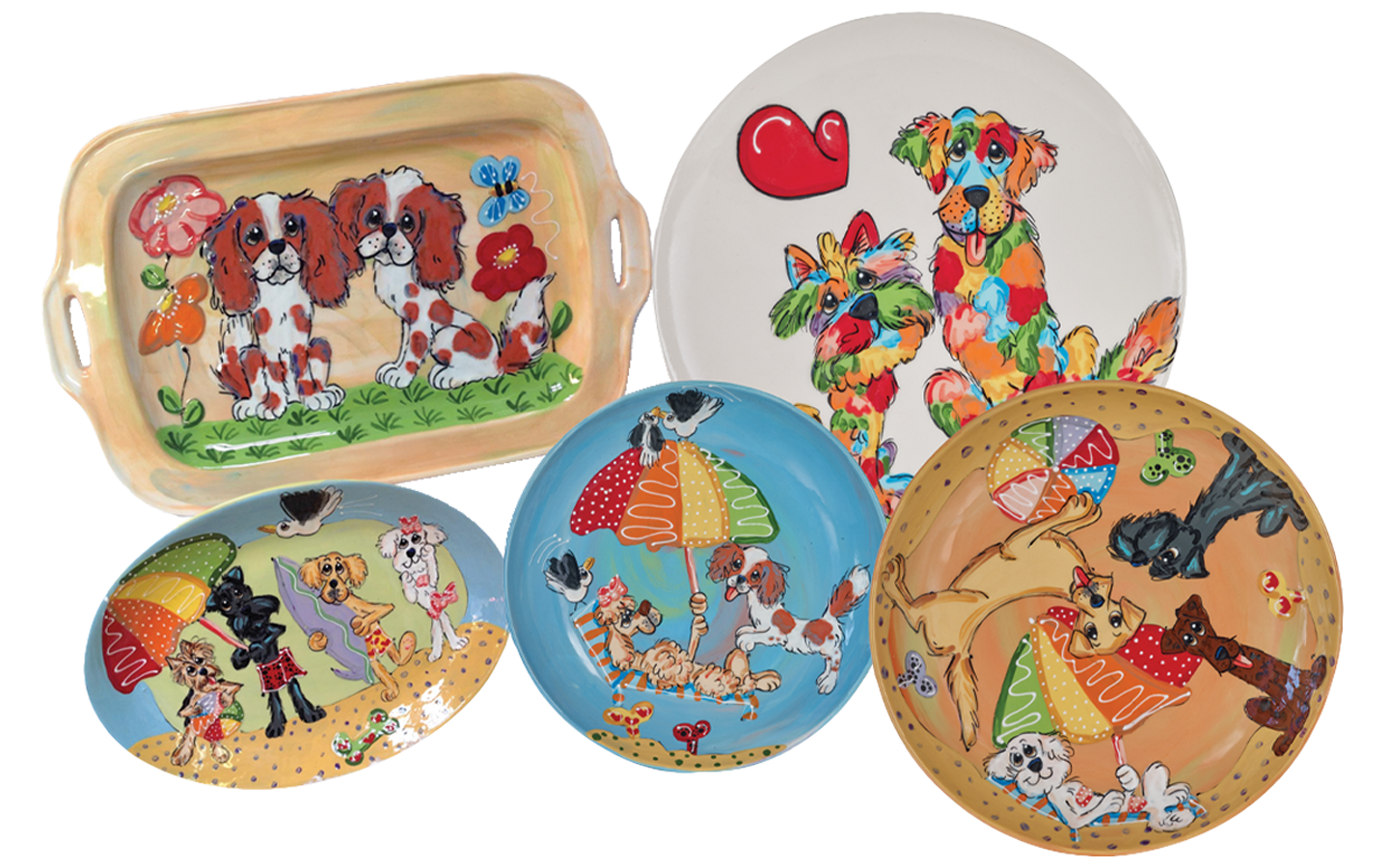 Our ceramic serve ware is of unparalleled quality! Every item is uniquely crafted from the finest white porcelain china, hand-drawn, hand-painted, bisque fired for 16 hours, glazed with three hand-brushed applications, and finish fired for 8 more hours by Laguna Beach Artist, Debby Carman.