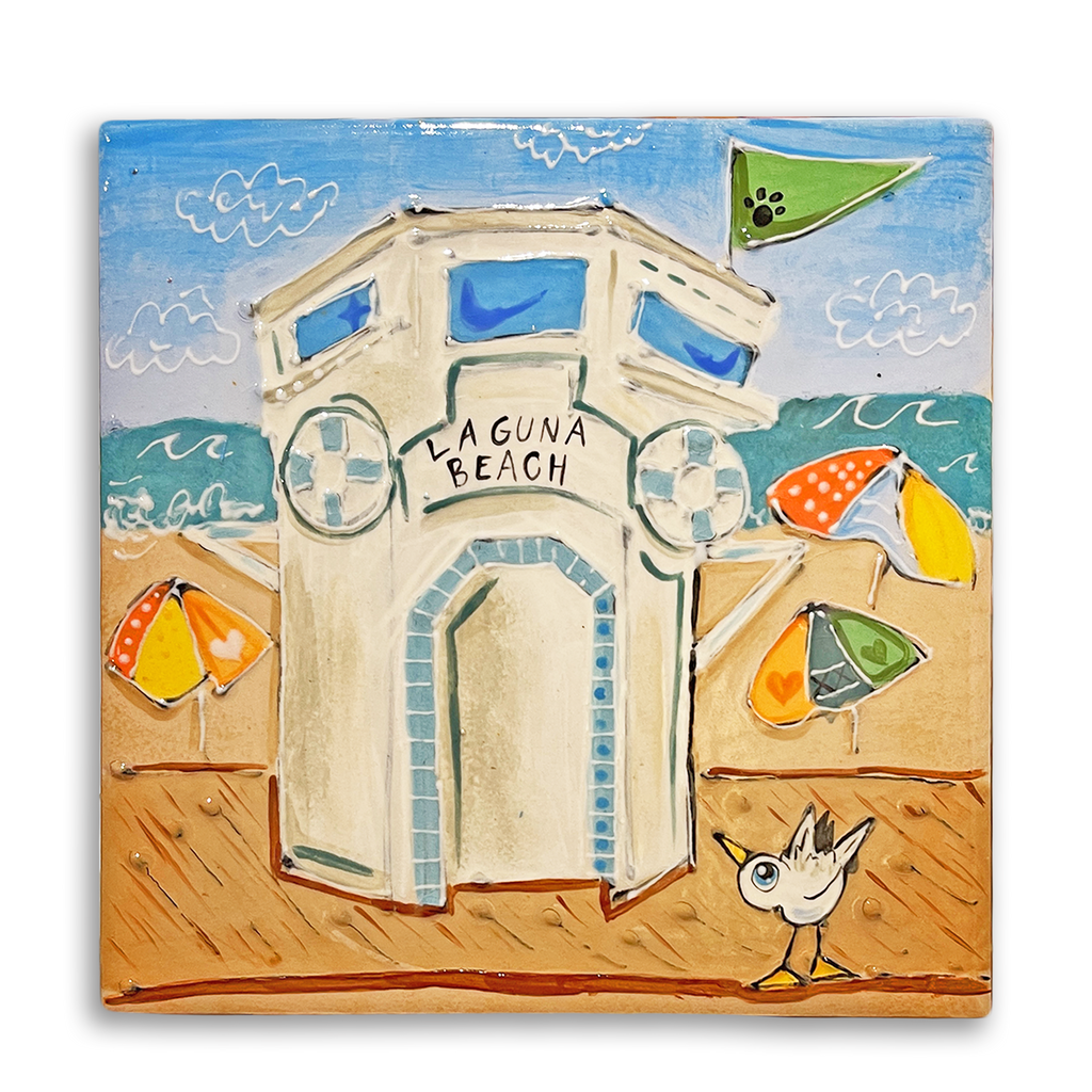 Hand-painted ceramic tile (mounted) by Debby Carman