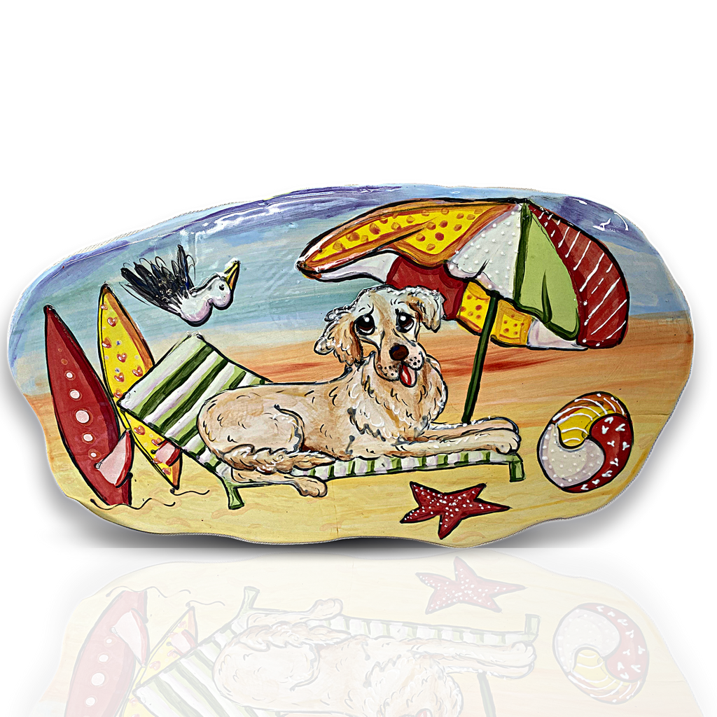Beach Day Bliss - Hand-Painted Dog Portrait Ceramic Tile by Debby Carman